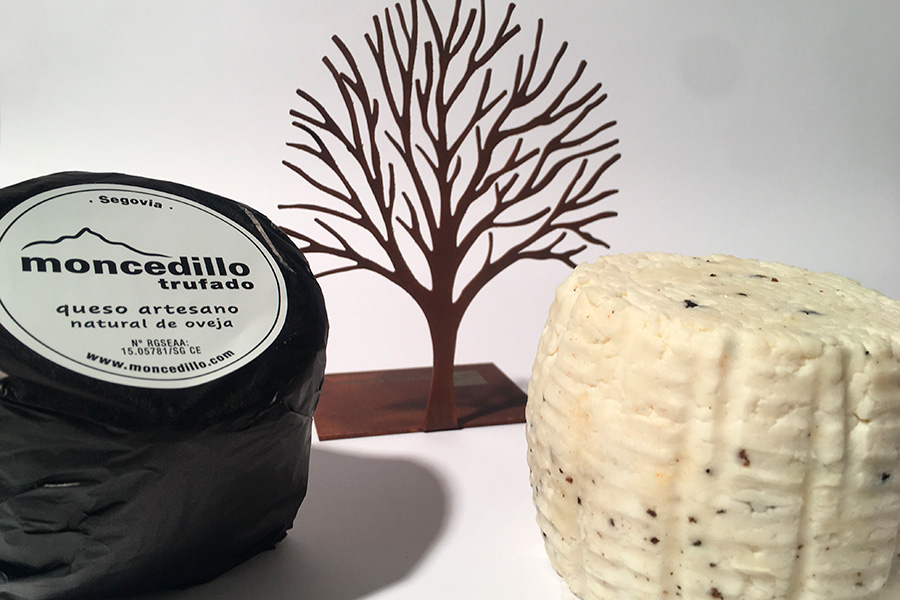 La trufa conservada en aceite de oliva arbequina para mantener todo su aroma es integrada en la cuajada del queso maridando con éxito, generando un paladar único ente los quesos con trufa negra.